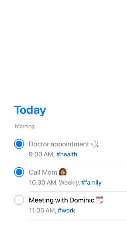 إلى قوائم المهام، لن تنسى أي تفصيل بعد الآن، إذ يمكنك إنشاء التذكيرات على السريع أثناء التنقل بمساعدة Siri وتخصيص القوائم والتنبيهات بفضل مجموعة من الأدوات الفعالة.