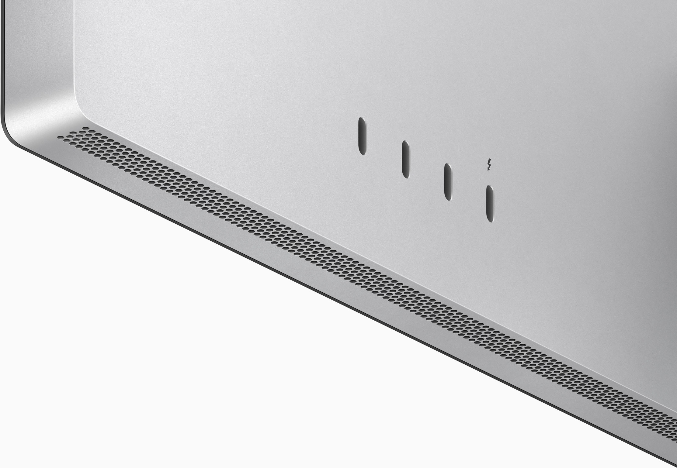 Three USB-C ports let you connect, power and charge devices — from networking and external drives to your keyboard, mouse or iPhone. The Thunderbolt port connects Studio Display to your Mac with a single cable. That same port can charge compatible Mac notebooks — and even fast‑charge a 14‑inch MacBook Pro.