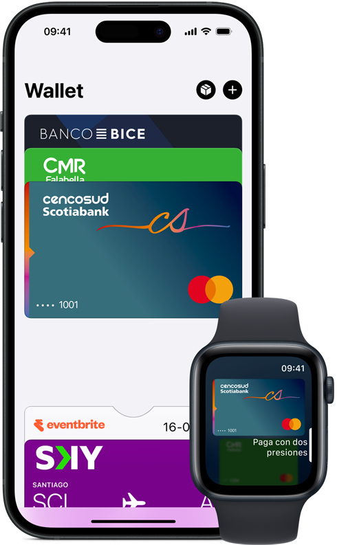• Apple Pay funciona con las principales tarjetas de débito y crédito emitidas por bancos de todo el mundo. Y la lista crece todos los días. Puedes ver todos los bancos que trabajan con Apple Pay aquí. Si tu tarjeta aún no es compatible con Apple Pay, ponte en contacto con tu banco para obtener más información.