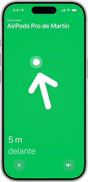 Localiza fácilmente el lugar exacto en el que te has dejado los AirPods Pro. El estuche de carga tiene una tecnología de banda ultraancha de nueva generación que multiplica por 1,5 la distancia de Búsqueda de Precisión.8 Y además, como el estuche lleva un altavoz integrado, podrás encontrar tus AirPods aunque estén sepultados en las profundidades de un sofá.
