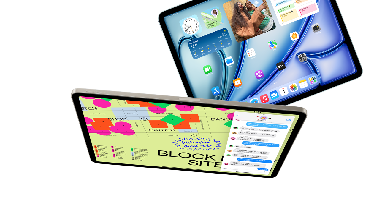 Μπορείς να επιλέξεις μεταξύ του iPad Air 11 ιντσών και του iPad Air 13 ιντσών, κάθε ένα από τα οποία διαθέτει μια πανέμορφη οθόνη Liquid Retina υψηλής ανάλυσης που δίνει ζωή σε ό,τι αγαπάς να κάνεις. Και οι δύο οθόνες προσφέρουν μια θαυμάσια εμπειρία προβολής με απόκριση και χρωματική ακρίβεια.