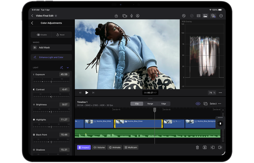 Shoot, edit and share all on one device with a pro camera system with LiDAR Scanner, studio-quality mics and four speakers. Capture 4K ProRes video, record a podcast and pick the right microphone for each app with the input chooser.