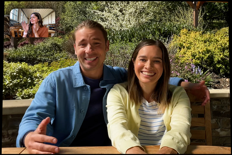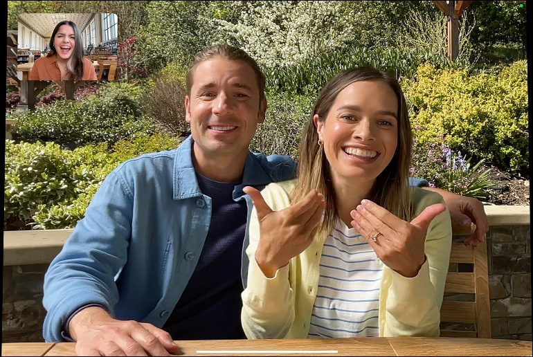 iPad Air, front exterior, user is on FaceTime and looking at Keynote in front of another iPad Air, back exterior