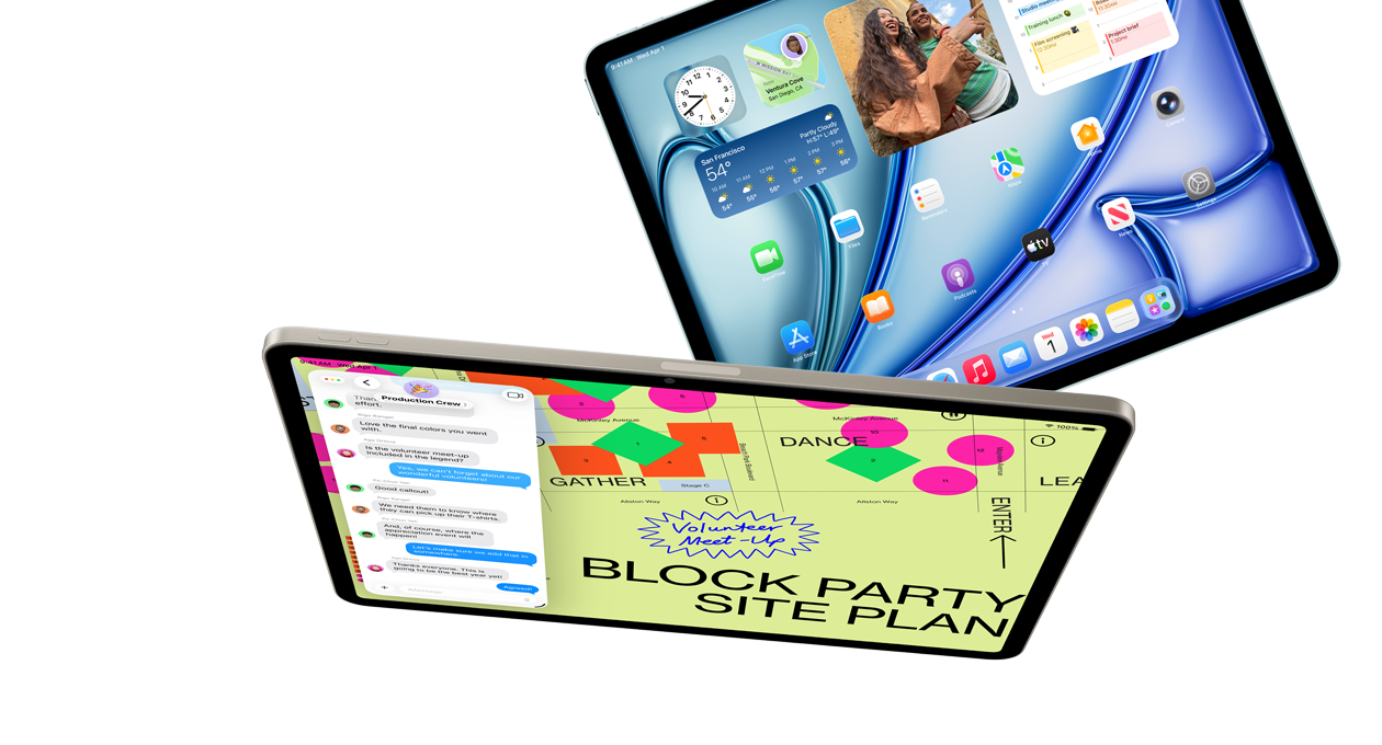 iPadOS 26 introduces Liquid Glass, a stunning new design with a vibrant look and game-changing enhancements that put iPad Air productivity on a new level. A reimagined, intuitive windowing system gives you greater power and flexibility than ever before. Run pro apps, play high-performance games, and take on creative projects of any size with a natural, touch-first experience.