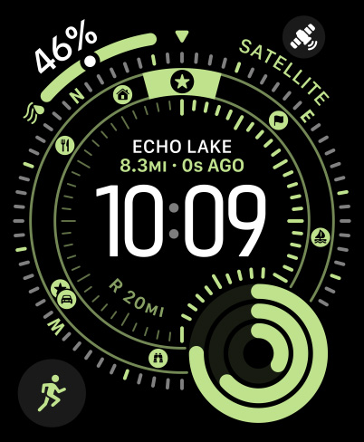 Markeer je huidige locatie of stel een routepunt in voor de camping of het begin van je hike. De laatste locatie waar je bereik hebt, wordt automatisch weergegeven.