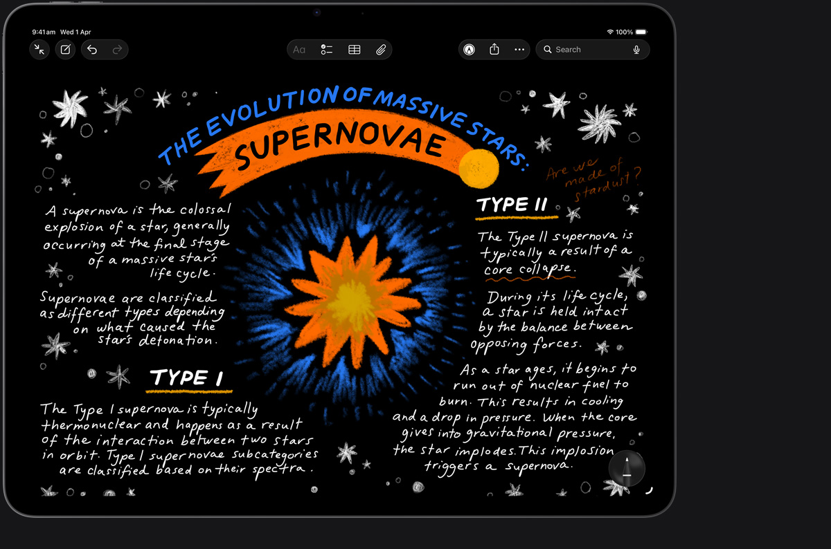 Apple Pencil sets the standard for how drawing, painting, handwriting and note-taking should feel — intuitive, precise and magical. All with pixel‑perfect precision, low latency, tilt sensitivity and support for palm rejection. And Apple Pencil Pro adds even more capabilities to bring your ideas to life like never before.2