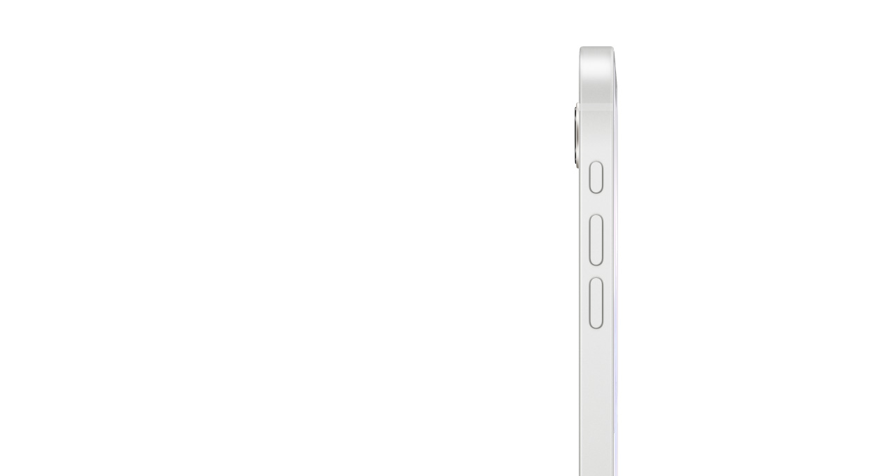 Przód iPhone’a 17e z warstwą Ceramic Shield 2, bok obudowy w kolorze białym, przyciski Czynności i głośności