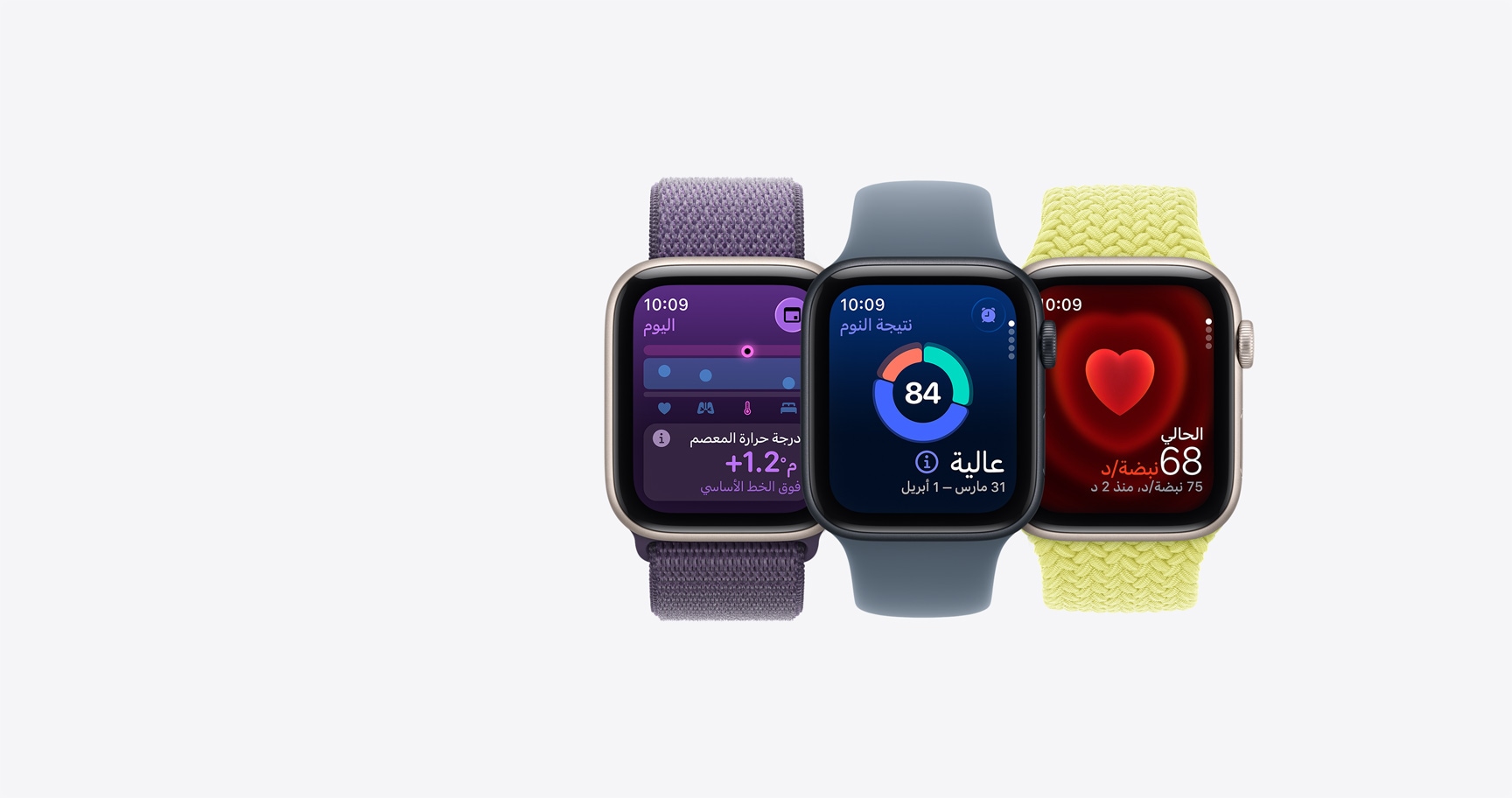اطّلع بسرعة على بياناتك الصحية الليلية مباشرة من معصمك، بما فيها معدل نبض القلب ومعدل التنفس ودرجة حرارة المعصم ومدة النوم. وسيصلك إشعار في حال خرج أحد هذه القياسات عن نطاقه الاعتيادي.8