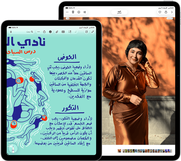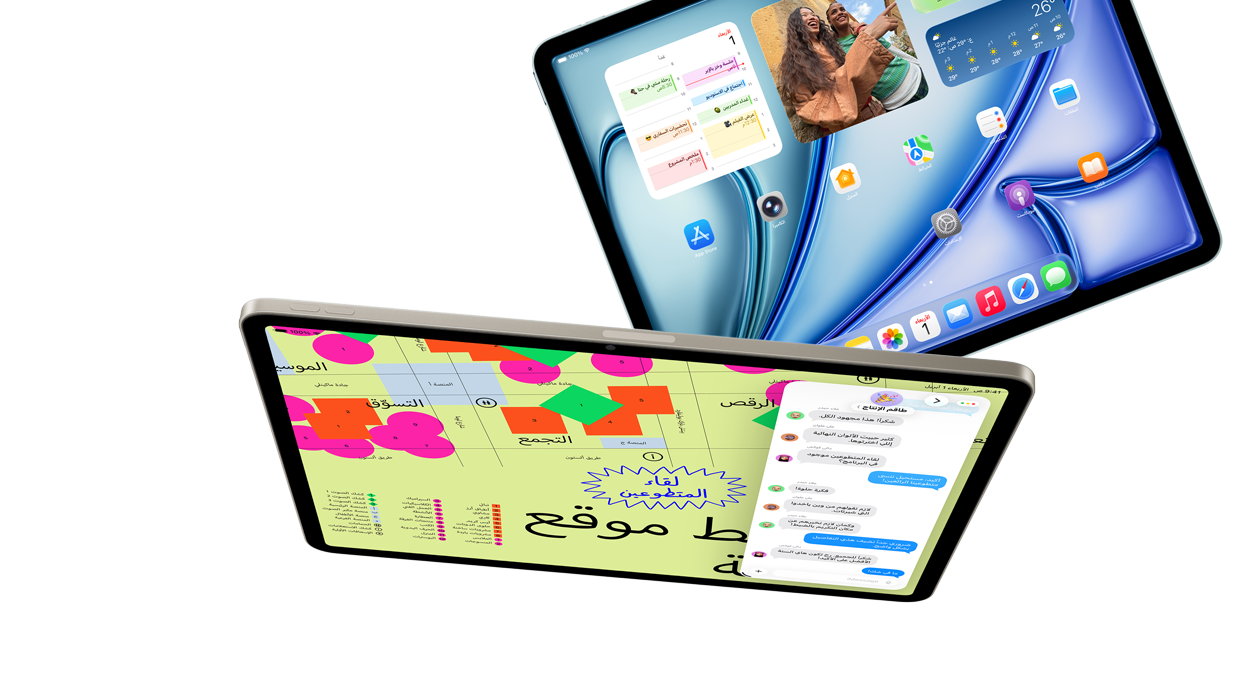 شريحة M4 فائقة السرعة مع ذاكرة نظام موحدة أكبر بنسبة 50 بالمئة ترتقي بالأداء لإنجاز كل ما تحب على iPad Air، فطاقتها الهائلة تطلق العنان لميزات الذكاء الاصطناعي وقدراته التي تستخدمها كل يوم لتنجز المطلوب بسرعة أكبر من دون جهد يذكر. ومع بنية وحدة معالجة رسومات الغرافيك، ستستمتع برسومات غرافيك متطورة أكثر سلاسة في كل ما تقوم به من عمل وإبداع ولعب ومشاهدة. أما البطارية فتواكبك طوال اليوم بكل طاقتها وكفاءتها.4