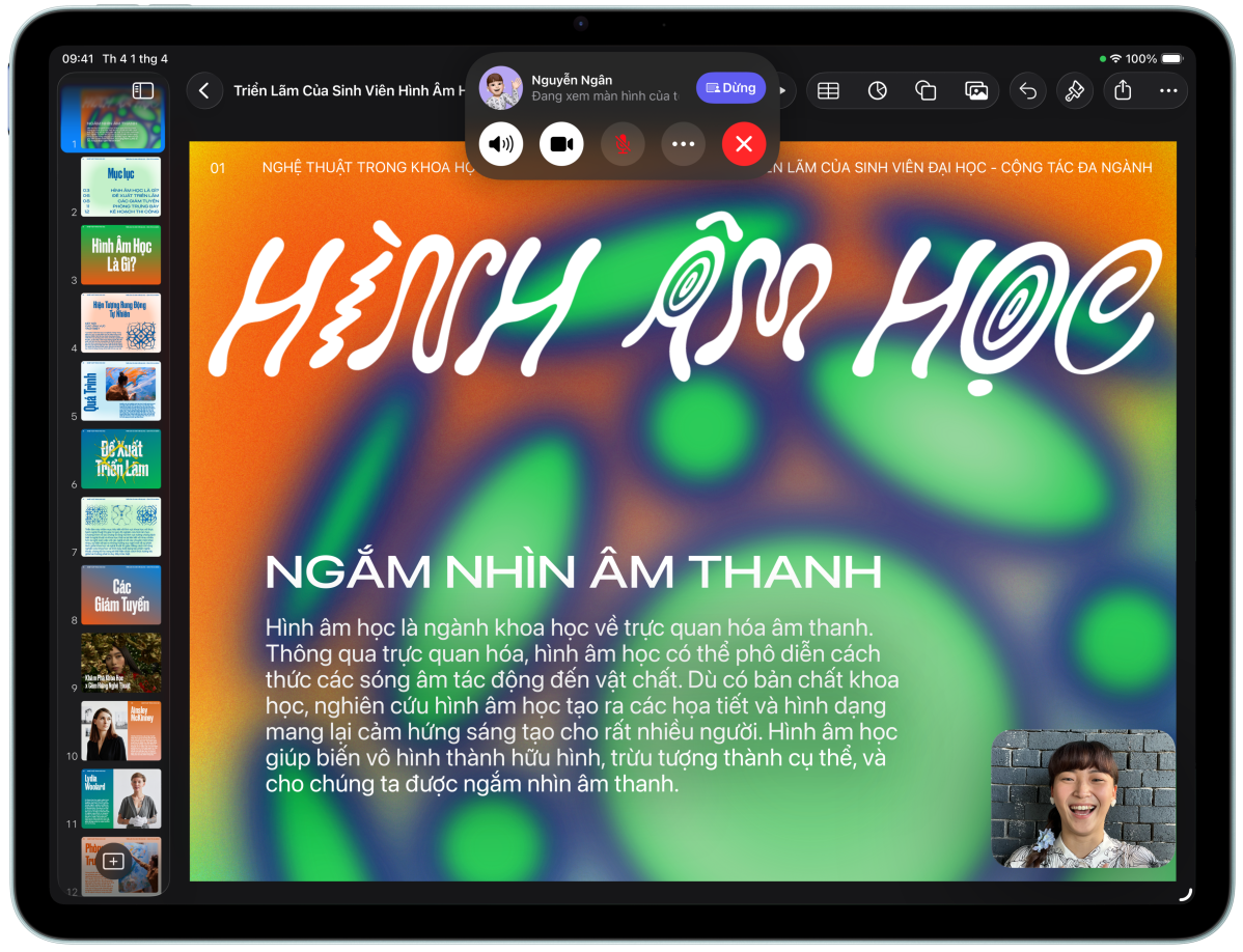 iPad Air, vỏ ngoài mặt trước, Magic Keyboard, màu đen, cuộc gọi FaceTime trên màn hình, hiển thị nhiều người tham gia