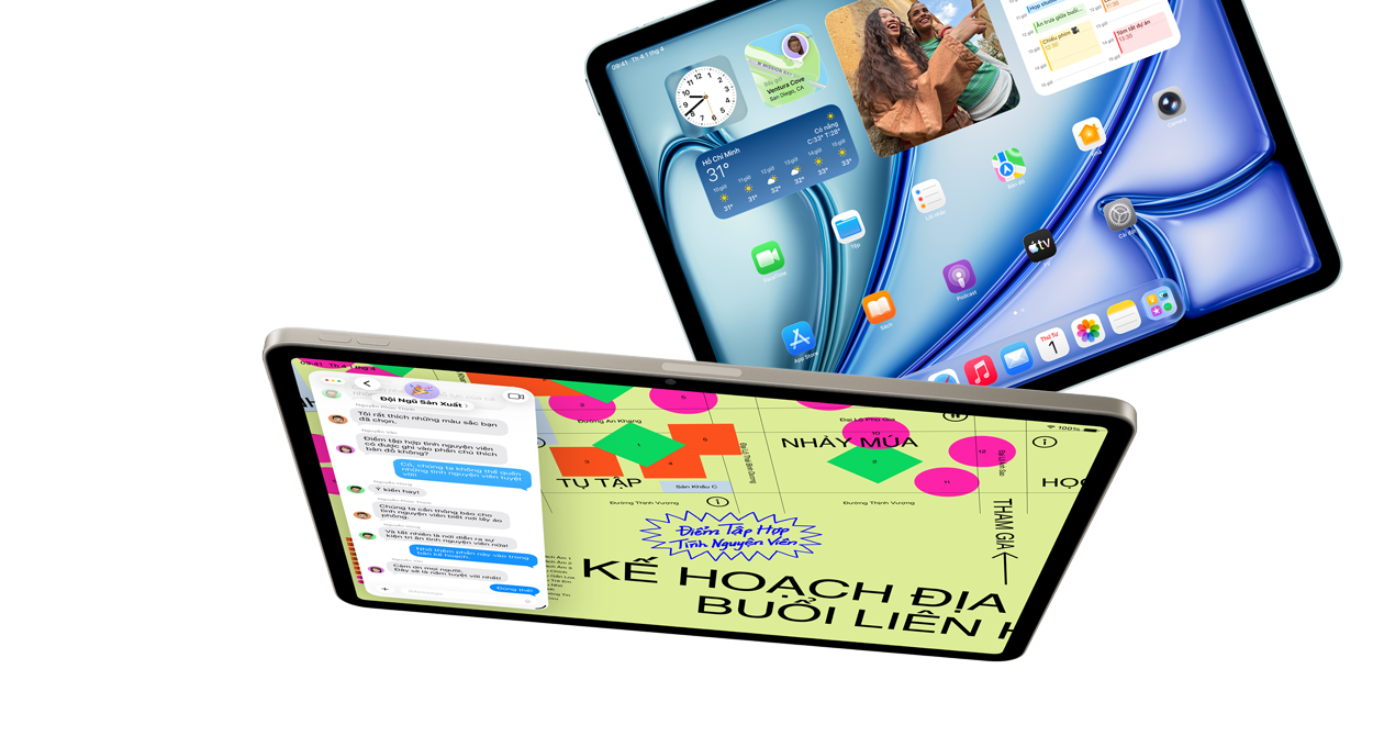 iPad Air được thiết kế cho Apple Intelligence, hệ thống trí tuệ cá nhân giúp bạn sáng tạo, giao tiếp và hoàn thành công việc dễ dàng. Với tính năng bảo vệ quyền riêng tư đột phá, Apple Intelligence giúp bạn yên tâm rằng không một ai khác có thể truy cập dữ liệu của bạn, kể cả Apple.